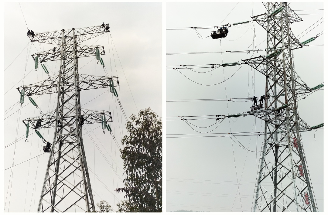 自3月25日開始,韶關(guān)當?shù)?/span>氣象預(yù)報都是紅黃色警級,遇到史上罕見的極端惡劣天氣包括暴風(fēng)雷雨和冰雹等,強降雨長達半個月。3月28日,一場歷時14天攻堅戰(zhàn)就在這種惡劣天氣下拉開帷幕,廣東和發(fā)輸變電安裝有限公司對位于韶關(guān)的220kV墨珠甲線#45-#48(雄墨線#106-#109)段線路進行停電遷改。業(yè)主單位及供電局等單位部門對廣東和發(fā)韶關(guān)武深項目部人員多次表示關(guān)懷與擔憂并存。在工期緊、任務(wù)重,天氣及環(huán)境惡劣的情況下,廣東和發(fā)頂著壓力迎難而上,接到停電命令馬上開展緊急行動,投入大量人力和機械,公司管理層對韶關(guān)項目部表示大力支持和鼓勵,工人們信心滿滿,全體人員努力克服重重困難,保證按期完成任務(wù),并用實際行動踐行初心使命,彰顯大公司勇于擔當的責(zé)任感和不畏艱辛的精神。